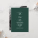 Um design moderno minimalista com sua data especial e detalhes do casamento, em tipografia clássica e chic em um fundo verde esmeralda. Adicione sua foto favorita ao contrário. Projetado por Thisnotme©