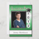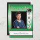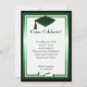 O boné de início está na data de conclusão personalizada. Carregue seu segundo grau ou foto da faculdade e personalize seu nome na frente. Tipo na data ou ano de conclusão. Preencha os detalhes da festa lá atrás. Mostrada em verde, preto e branco com brilho metálico.