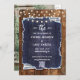Ponha o tom para o seu casamento country-chic com este Rustic Barn Wood Denim Photo Cowboy Wedding Salve a Data com um código QR. Apresentando um fundo de madeira em cascata, uma moldura de mancha desbotada, uma fonte escrita à mão e luzes brilhantes de cordas de celeiro, esta design combina o encanto rústico com elegância moderna. Um modelo personalizável de fotos adiciona um toque pessoal, enquanto os sotaques caligráficos modernos criam um na moda, ainda que confortável. Perfeito para casamentos de celeiro, fazenda ou campo, este salva-vidas captura o calor e romance de uma celebração do campo. Personalize facilmente com seus detalhes de casamento para uma design tão inesquecível quanto sua história de amor!