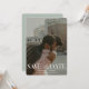 Informe aos seus convidados sobre sua próxima data de casamento com esses Cartões salve a data modernos com fotos verticais sangradas por cheio, tipografia moderna, código QR para o seu URL personalizado no verso e uma cor de volta em verde-claro. Todas as cores podem ser mudadas para o ajustado do seu estilo e tema de casamento, você também pode alternar entre diferentes formas e tamanhos de papel. Use a ferramenta design para personalizar esta opção Salvar o modelo de Data para fazer ainda mais alterações, se desejar. Precisa de ajuda? Largue-me uma mensagem!