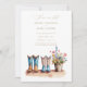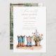 Anuncie seu grande dia com esse casamento de fotos de flores selvagens russas Salve a data. Apresentando uma ilustração encantadora da aquarela de suas botas de cowboy em denim e couro marrom, combinada com um balde rústico transbordando de flores silvestres, esta design combina lindamente o charme do país com elegância romântica. Um modelo de foto personalizável adiciona um toque pessoal, enquanto a tipografia da na moda aumenta a estética quentora e rústica. Perfeito para casamentos de celeiro, rancho ou ao ar livre, este salve-o-encontro dá o tom para uma celebração cheia de amor, natureza, e um toque de encanto ocidental. Personalize facilmente com seus detalhes de casamento!