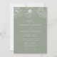 Convites de casamento florais elegantes, com uma borda de flores brancas delicadas, com um fundo verde sábio. Personalize os convites para casamentos florais verdes de sábio com seus nomes e detalhes de casamento em letras brancas com sotaques de escrita de caligrafia. Projetado para coordenar com a nossa coleção de casamento de Dainess Floral.