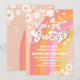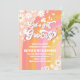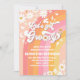 Celebre o marco do seu pequeno com este convite de primeiro aniversário retrô e groovy, apresentando tons vibrantes de arco-íris, margaridas alegres, borboletas, sinais de paz e corações. O design inspirado nos anos 70 traz um clima divertido e nostálgico perfeito para uma festa temática boho ou hippie. Personalize com o nome da criança e os detalhes da festa para criar um souvenir único que os convidados vão amar. Este convite colorido e alegre define o tom para paz, amor e diversão inesquecível de aniversário.