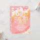Celebre o marco do seu pequeno com este convite de primeiro aniversário retrô e descolado, apresentando listras onduladas coloridas, margaridas alegres, borboletas, corações e estrelas. O design divertido inspirado nos anos 60 cria uma atmosfera alegre e vibrante perfeita para a festa de uma menina. Personalize com o nome da criança, detalhes da festa e informações de RSVP para torná-lo exclusivamente seu. Este convite boêmio em cores de arco-íris é ideal para celebrações cheias de paz, amor e diversão que os convidados adorarão.