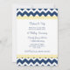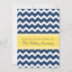 Cartão de convite de festa de primeiro aniversário de casamento em azul naval escuro moderno e divertido, amarelo limão brilhante e padrão de listras ziguezague retrô em chevron branco, elegante e contemporâneo. Personalizável com os detalhes da sua festa.