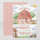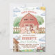 Convocando todos os animais da festa para celebrar com este convite de "Festa na Fazenda". Com uma cocheira vermelha, adoráveis animais da fazenda em aquarela e um trator. Perfeito para o primeiro aniversário de tema rústico de um menino. Fácil de personalizar com o nome da criança e detalhes do evento.