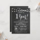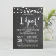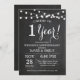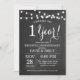 Convite de 1º Aniversário de Casamento. Fundo de Quadro de Giz. Luzes de Corda. Preto e Branco. 1º, 2º, 3º, 4º, 5º, 10º, 15º, 20º, 25º, 30º, 35º, 40º, 45º, 50º, 55º, 60º, 65º, 70º, 75º, 80º, Qualquer Ano. Aniversário de Adulto. Festa de Aniversário de Homem ou Mulher. Para personalização adicional, clique no botão "Personalizar" e use nossa ferramenta de design para modificar este modelo.