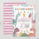 Convite de 1º Aniversário de Menina Pastel Dinossa