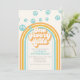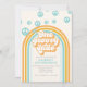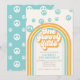 Convite de 1º aniversário inspirado no Cara Legal Retrô com fontes e cores estilo anos 70.