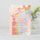 Celebre o marco do seu pequeno com este convite de primeiro aniversário retrô inspirado e groovy. Com cores de arco-íris pastel, margaridas divertidas, borboletas, corações e sinais de paz, este design alegre define o tom perfeito para uma festa divertida e vibrante. A tipografia em negrito e os detalhes caprichosos tornam fácil personalizar enquanto cria um souvenir memorável. Ideal para temas boho, retrô e flower power, este convite traz paz, amor e alegria para a sua celebração.