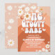 Celebre o marco do seu pequeno com este convite de aniversário de 1º ano retrô e descolado! Com ondas de arco-íris em laranja e vermelho ousados, margaridas alegres, corações, borboletas e sinais de paz, este design irradia charme inspirado nos anos 70. A tipografia caprichosa e os motivos alegres definem o tom perfeito para uma festa divertida e vibrante. Personalize com o nome da criança, data e detalhes para criar um souvenir único que os convidados vão adorar. Perfeito para celebrações temáticas hippie, boho ou flower power.