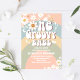 Celebre o grande marco do seu pequeno com este convite de primeiro aniversário retrô de arco-íris pastel. Com fontes inspiradas nos anos 70, margaridas alegres, borboletas, sinais de paz e arcos coloridos, este design traz paz, amor e diversão para os detalhes da sua festa. Perfeito para celebrações boho, retrô ou temáticas hippie, este convite personalizável define o tom para uma reunião de aniversário alegre e elegante.