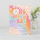 Celebre o marco do seu pequeno com este convite de aniversário retrô de arco-íris! Com cores pastéis vibrantes, sinais de paz, flores e fontes groovy divertidas, ele define o tom perfeito para uma festa divertida e inspirada nos hippies. Personalize com seus detalhes e espalhe paz, amor e alegria para uma celebração de primeiro aniversário verdadeiramente inesquecível.