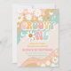 Convite de 1º Aniversário Groovy Rainbow Daisy