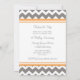 Cartão de convite de festa de primeiro aniversário de casamento em laranja tangerina divertida e moderna, cinza e branco com padrão de zigue-zagues e listras chevron retrô, elegante e contemporâneo. Personalizável com os detalhes da sua festa.