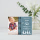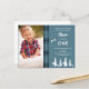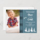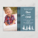 Na frente: Um convite de festa temática de lenhador cinza azul para a festa de 1º aniversário de um menino. Insira sua foto vertical do aniversariante! Modelos para nome, um ano de idade e detalhes da festa.