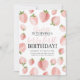 Um divertido convite de 1º aniversário com morango para a festa de um ano do seu filho! Com nossos morangos desenhados à mão em aquarela, confira também nossos itens correspondentes!