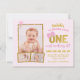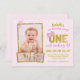 divertido convite de primeiro aniversário rosa e dourado ONE!