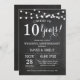 Convite de 10º Aniversário de Casamento. Fundo de Quadro Negro. Luzes de Corda. Preto e Branco. 1º, 2º, 3º, 4º, 5º, 10º, 15º, 20º, 25º, 30º, 35º, 40º, 45º, 50º, 55º, 60º, 65º, 70º, 75º, 80º, Qualquer Ano. Aniversário de Adulto. Festa de Aniversário de Mulher ou Homem. Para personalização adicional, clique no botão "Personalizar" e use nossa ferramenta de design para modificar este modelo.