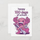 Design fofo apresentando um axolote usando uma mochila e segurando uma caneta grande com a citação "Feliz 100 dias de escola". Feliz 100º dia de escola ou jardim de infância.