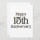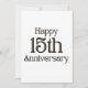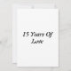 Este convite apresenta as palavras "Feliz 15º Aniversário" em uma fonte de impressão única com letras douradas e contorno preto. Impresso em um papel clássico, de todos os lados, com 17,5 pt de espessura e acabamento fosco não revestido com textura de casca de ovo, feito e impresso nos EUA, com 15 Anos de Amor impresso no verso.