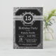 Convite de 15º Aniversário com Fundo Preto e Brilho Prateado. Aniversário de Crianças. Aniversário de Homens ou Mulheres. Convite de Aniversário para Crianças, Meninos ou Meninas, Adolescentes. 13º 15º 16º 18º 20º 21º 30º 40º 50º 60º 70º 80º 90º 100º. Qualquer Idade. Para personalização adicional, clique no botão "Personalizar" e use nossa ferramenta de design para modificar este modelo.