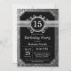 Convite de 15 anos com fundo glitter preto e prata. Aniversário infantil. Aniversário masculino ou feminino. Convite de aniversário para menino ou menina adolescente. 13º 15º 16º 18º 20º 21º 30º 40º 50º 60º 70º 80º 90º 100º. Qualquer idade. Para personalização adicional, clique no botão "Personalizar" e use nossa ferramenta de design para modificar este modelo.