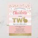 Convite de festa tema coelho fofo rosa e dourado para o 2º aniversário da bebê.