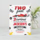 Acelerem os motores para uma celebração épica com este convite de segundo aniversário de carro de corrida "Two Fast 2 Curious". Com uma estética de corrida moderna e elegante e tipografia em negrito, é a maneira perfeita de definir o ritmo para o grande dia do seu filho. Este design de alta octanagem é totalmente personalizável, permitindo que você adicione facilmente os detalhes da sua festa para um visual profissional e pronto para a pista que os convidados vão adorar.