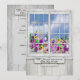 Convite de aniversário de casamento country encantador e charmoso. Janela rústica com muitos vidros e vista de flores pela janela em caixa de janela ao ar livre. Personalize o verso e faça o seu próprio.