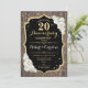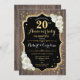 Convite de 20 Casamento de Aniversário. Padrão de madeira marrom-escura design elegante e russa, com ouro brilhante e rosas brancas.