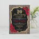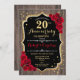 Aniversário de 20 Convocação Convidar a elegante madeira marrom-escura design, rustica, com dourado brilhante falso e rosas vermelhas.