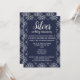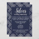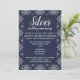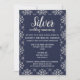 Este convite de aniversário de 25 anos de casamento, elegante e sofisticado, em azul moderno e cinza prateado, tem um padrão metálico falso no fundo azul e um campo azul sólido com suas informações personalizadas, tornando-o perfeito para o seu aniversário. Seu convite é rápido e fácil de personalizar usando o modelo. O convite faz parte de um conjunto com muitos outros itens essenciais para a celebração. Convide os convidados para a celebração do seu aniversário de 25 anos de casamento com estilo!