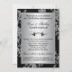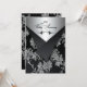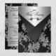 Este convite de aniversário de 25 anos de casamento com visual de brocado floral preto e prata tem abas pretas que são IMPRESSAS nele para parecer que estão abertas. Possui um rolo decorativo preto na frente e atrás, juntamente com palavras elegantes que dizem "Aniversário de 25 anos de casamento". Você pode removê-las se quiser adicionar seu próprio texto. O convite é totalmente personalizável. Se você precisar de produtos correspondentes, por favor envie um e-mail para niteowlstudio@gmail.com com sua solicitação.
