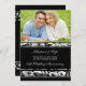Cartão de convite de festas de aniversário de casamento com 25 de foto em elegante padrão floral e borboleta preto e branco, delicado e formal. Personalizável com os detalhes do seu partido e a sua própria fotografia.