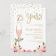 Convite de aniversário de 25 Floral de rosa Floral Este convite de aniversário de casamento de 25 apresenta dois arranjos florais de aquarela em tons de rosa e um vidro elegante alto em textura falsa de ouro e aquarela. O título é uma falsa caligrafia dourada e faz parte da imagem. Este simples mas elegante convite de 25 anos está pronto para ser personalizado.