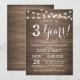 Convite de 3º Aniversário de Casamento. Fundo de Madeira Rústica. Luzes de Corda. 1º, 2º, 3º, 4º, 5º, 10º, 15º, 20º, 25º, 30º, 35º, 40º, 45º, 50º, 55º, 60º, 65º, 70º, 75º, 80º, Qualquer Ano. Aniversário Adulto. Festa de Aniversário de Homem ou Mulher. Para personalização adicional, clique no botão "Personalizar" e use nossa ferramenta de design para modificar este modelo.