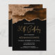 Este convite de 30º aniversário moderno apresenta uma imagem em aquarela de um geodo de ágata em tons ricos de marrom moca com destaques de brilho dourado falso. As palavras "30º Aniversário" aparecem em brilho dourado falso em uma fonte manuscrita moderna decorativa. Personalize-o com o nome do homenageado em texto dourado e os detalhes em branco. A mesma imagem de ágata aparece no verso.