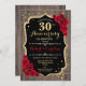 Aniversário de 30 Convocação Convidar a elegante madeira marrom-escura design, rustica, com dourado brilhante falso e rosas vermelhas.