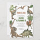 Convite de aniversário de dinossauro para um pouco de Três Rex. Borda de dinossauros realísticos de aquarela.