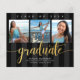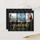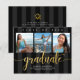 Anuncie ao mundo que seu graduado favorito alcançou sua meta com este convite de anúncio de orçamento personalizado, simples, moderno e impressionante. A caligrafia brilhante, elegante e dourada falsa sobrepõe-se à tipografia branca sem serifa em um fundo listrado preto e cinza escuro. Adicione três fotos de sua escolha e personalize o texto personalizado com o nome do graduado, nome da escola, ano de formatura e data de formatura. No verso, adicione sua nota pessoal, próxima escola que ele está cursando, informações da festa, etc. Garantido para adicionar diversão estilosa à ocasião especial deles!