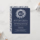 Convite de aniversário de casamento de 45 anos azul safira com louro branco. Fundo floral.
