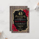 Desenho elegante rústico com padrão de madeira marrom escuro, dourado brilhante falso e rosas vermelhas rubi.