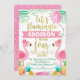 Procurando um doce convite para o quarto aniversário do flamingo? Esse design apresenta dois flamingos, várias frutas tropicais e algumas folhagens tropicais. O convite de 4 anos para esta rapariga é de certeza para marcar a cena de uma festa de aniversário colorida com tema flamingo.