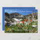 A frente deste convite personalizado moderno é nossa fotografia original de belas montanhas, um lago gelado e flores silvestres coloridas; o texto é branco. O verso é azul, com texto de convite branco. Um belo convite floral personalizado para uma festa de 5º aniversário de casamento. Fotografia original de Alan Socolik. Todos os Direitos Reservados © 2015 Alan & Marcia Socolik.
