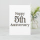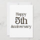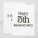 Este convite apresenta as palavras "Feliz 5º Aniversário" em uma fonte de impressão única com letras douradas e contorno preto. Impresso em um papel clássico e versátil com 17,5 pt de espessura e acabamento fosco não revestido com textura de casca de ovo, feito e impresso nos EUA, com 5 Anos de Amor impresso no verso.