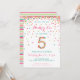Celebre o aniversário de 5 anos da sua filha com confetes coloridos dourados, rosa, menta e azul turquesa nestes convites de aniversário de 5 anos! Com detalhes da festa da sua filha e um "5" em confetes. O título diz "Oh Me, Oh My!" Listras combinando coloridas no verso.