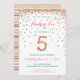 Convite de 5º aniversário para meninas festa de a