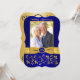 Este convite de foto de aniversário de casamento de 50 anos, com flores em azul real e dourado, tem uma fita dourada IMPRESSA e uma medalha azul e dourada com aparência de gravura FALSA IMPRESSA. Possui uma área de modelo para você carregar sua própria foto digital. Você pode remover o texto estilizado em cursiva "Aniversário de Casamento" ou "50º". Todo o texto é personalizável, assim como as opções de papel. ****POR FAVOR, OBSERVE que se você mudar para papel metálico dourado, ele é um dourado muito escuro e alterará as cores do design (transformando a foto em dourada, etc.), então NÃO sugiro usar esse papel. O papel de feltro também alterará ligeiramente a cor da sua foto. ALÉM DISSO, se você mudar as fontes ou tamanhos de fonte, seu texto pode não caber mais corretamente. O Zazzle não editará nada para erros de digitação, alinhamento ou qualquer outra coisa, e eu não verei seu convite. Tudo será impresso como aparece na tela do seu monitor. Se precisar de ajuda com o convite, por favor entre em contato comigo ANTES de fazer o pedido. Este convite é projetado para se ajustar ao cartão de tamanho 5x7 com forma CURVA. Se você mudar para outro tamanho/forma, o design não se ajustará mais corretamente, então se