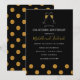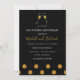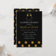 Convites de celebração de aniversário de 50 anos de casamento com confetes brilhantes dourados e pretos com tipografia de letra manuscrita e taças de champanhe.